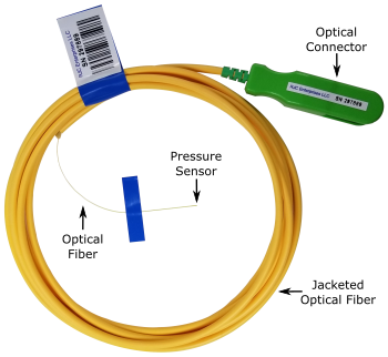 » Fiber optic sensors use light transmitted through optical fiber to detect changes in pressure, temperature, and other physical properties. With pressure, for example, a microscopic membrane at the end of the sensor flexes according to stress and modifies returning light that is read by a highly-accurate instrument.
